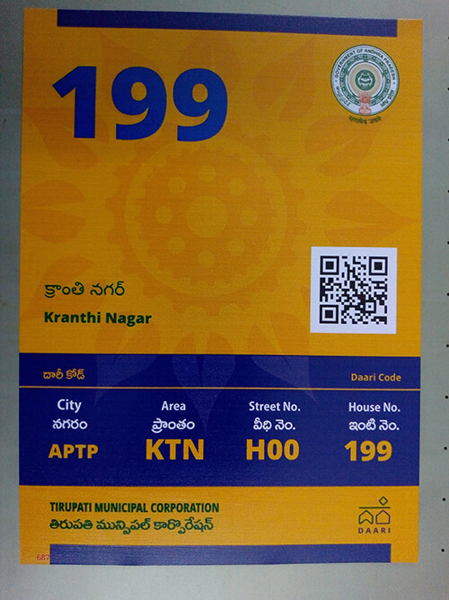 Unique Digital Door Numbering (DDN) system at Tirupati was inaugarated by contemporary CM, and this is a first-of-its-kind in the country.